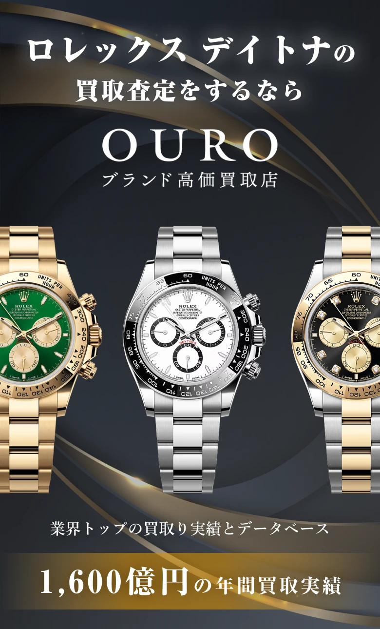 OURO(オウロ)は、ロレックス デイトナの買取実績が豊富なブランド時計専門買取店です。現行モデルはもちろん、旧型デイトナやヴィンテージモデルまで、市場相場を正確に把握したうえで高価買取を行っています。