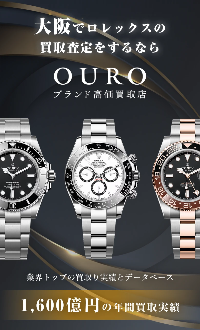 大阪市(都島区、福島区、此花区、西区、港区、大正区、天王寺区、浪速区、西淀川区、東淀川区、東成区、生野区、旭区、城東区、阿倍野区、住吉区、東住吉区、西成区、淀川区、鶴見区、住之江区、平野区、北区、中央区)堺市(堺区、中区、東区、西区、南区、北区、美原区)岸和田市、豊中市、池田市、吹田市 泉大津市、高槻市、貝塚市、守口市、枚方市、茨木市、八尾市、泉佐野市、富田林市、寝屋川市、河内長野市、松原市、大東市、和泉市、箕面市、柏原市、羽曳野市、門真市、摂津市、高石市、藤井寺市、東大阪市、泉南市、四條畷市、交野市、大阪狭山市、阪南市、三島郡島本町、豊能郡豊能町、豊能郡能勢町、泉北郡忠岡町、泉南郡熊取町、泉南郡田尻町、泉南郡岬町、南河内郡太子町、南河内郡河南町、南河内郡千早赤阪村ロレックスの高価買取をご希望の方は、ぜひOUROにご相談ください。